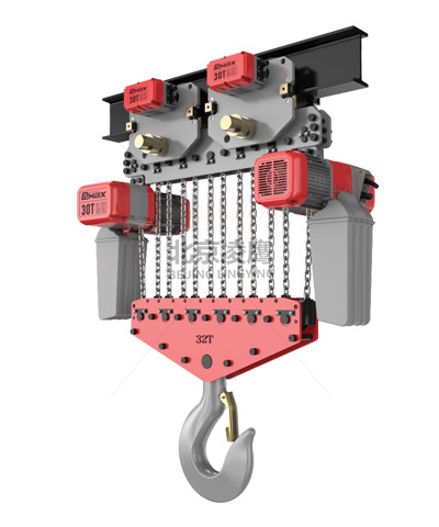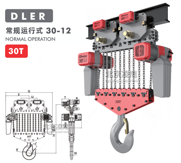 30噸DLEK環(huán)鏈電動葫蘆運行式制動裝置:此裝置可以實現(xiàn)在電源切斷時瞬間剎車。