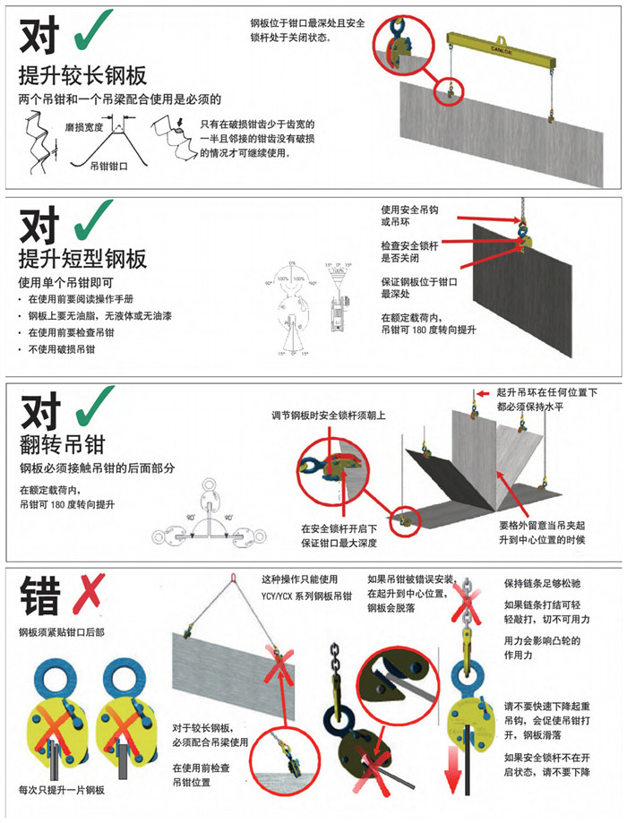 CDH型豎吊起重鉗適用于鋼板豎直吊裝,此種鋼板吊鉗采用首鋼低碳優(yōu)質(zhì)合金鋼制造,載荷范圍為0-10噸。它只能同時吊裝一塊鋼板,嚴(yán)禁層疊吊裝。吊鉗起 吊時必須將拉環(huán)手柄向上,以使彈簧拉緊,卸荷時拉環(huán)手柄向下,彈簧放松后簽字和鋼板才能分離,且吊裝過程中不得碰撞被吊物,嚴(yán)禁超載使用。帶彈簧鎖無作業(yè) 狀態(tài)下,鎖具自然加緊,吊上物體夾力成比例增強。本產(chǎn)品嚴(yán)格按國家3包執(zhí)行,產(chǎn)品質(zhì)量由中國人民保險公司(PICC)承保,請放心使用。